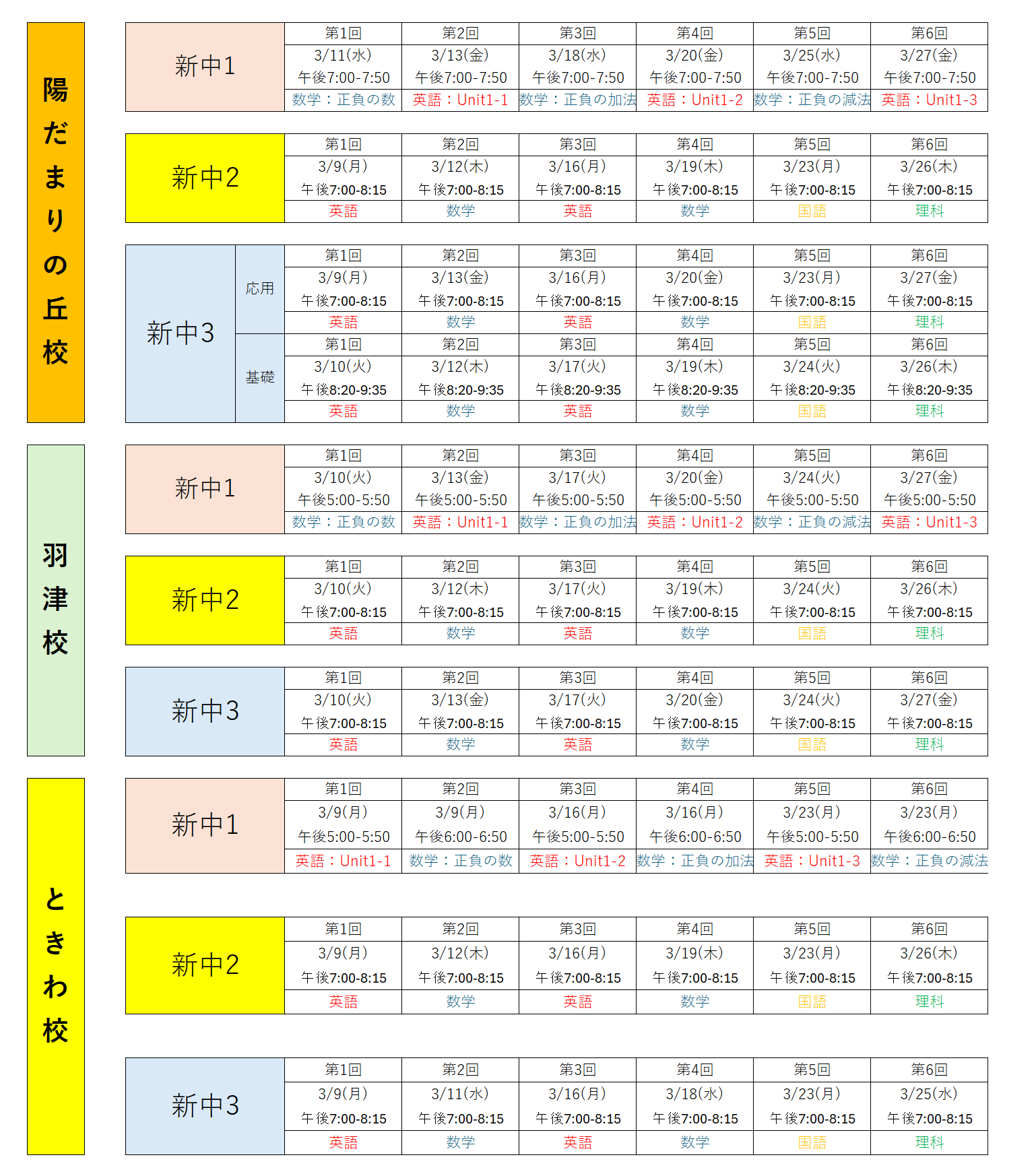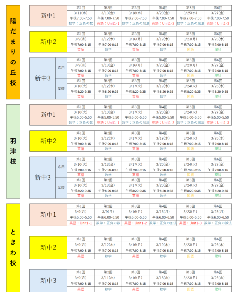※新中1は「中学準備講座」にて1月に行った内容と同内容です。(はじめて中学数学を勉強する方向け)