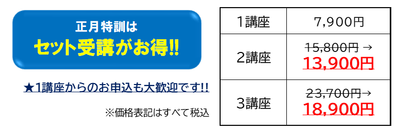 【講習日数】 1教科あたり2日(1日:50分×2コマ)